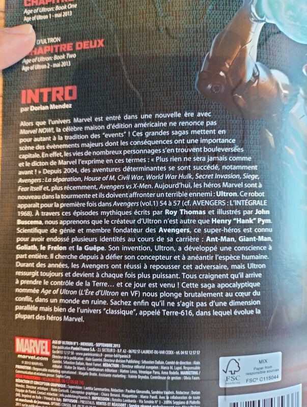 Il s'agit du premier numéro de l'événement comics "Age of Ultron" de 2013, écrit par Brian Michael Bendis avec des illustrations de Bryan Hitch. Cet événement croisé s'est déroulé sur six numéros et a été publié par Marvel Comics. Il mettait en scène Ultron, un super-vilain créé par Hank Pym (Ant-Man), prenant le contrôle du monde dans un futur dystopique.