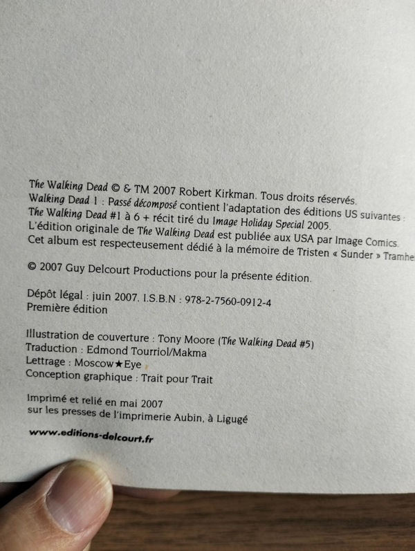 Walking Dead n°1 passé décomposé, paru le 6 juin 2007 aux éditions Delcourt
